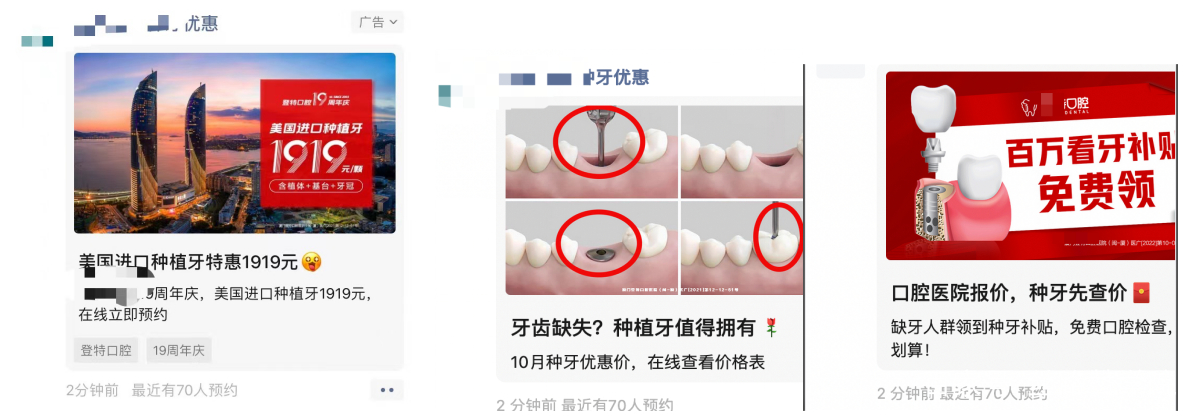 厦门某知名口腔医院,初期投放以周年庆优惠引流,投放中期以种牙补贴进行引流获客。