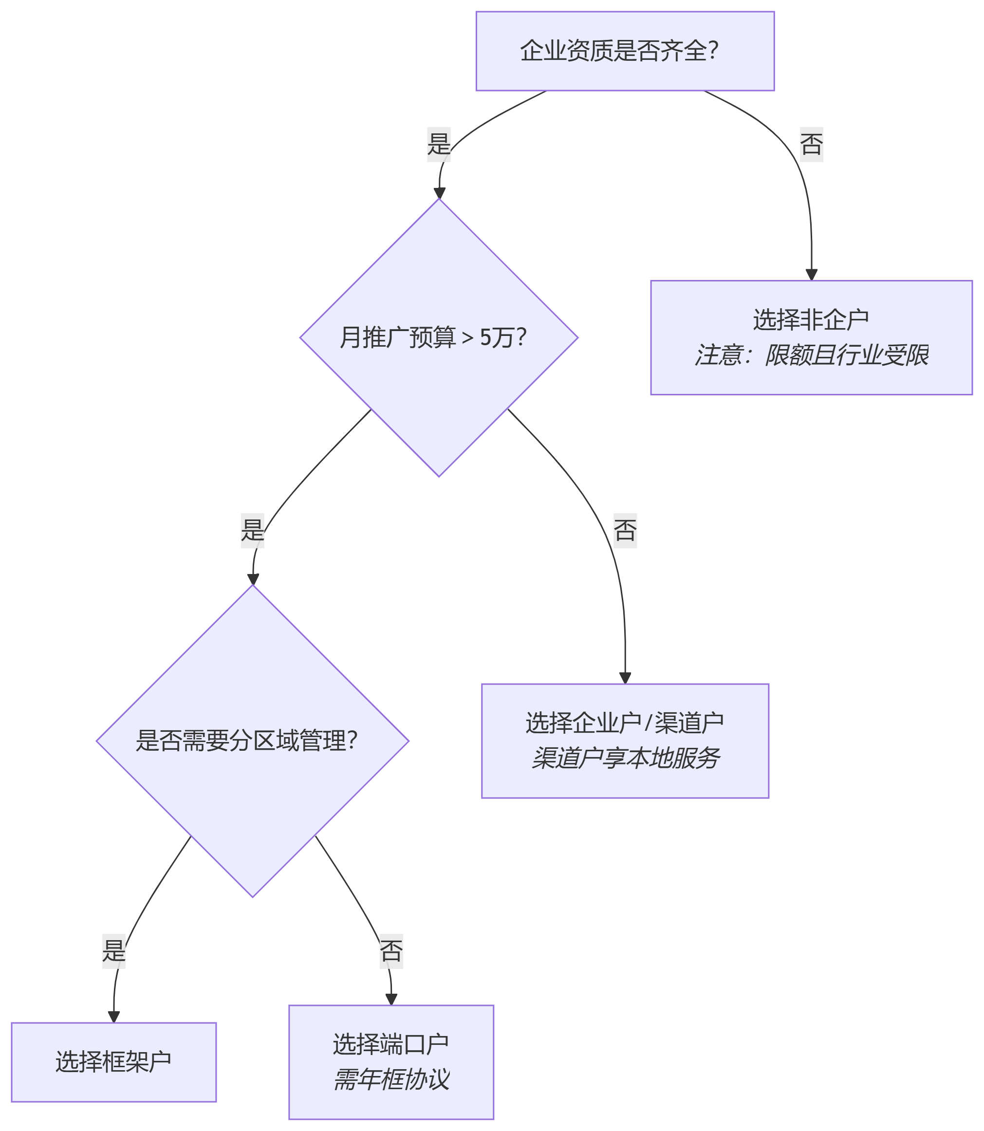 ✅ 企业资质齐全 → 优先企业户或正规渠道户;